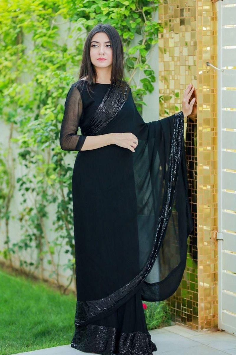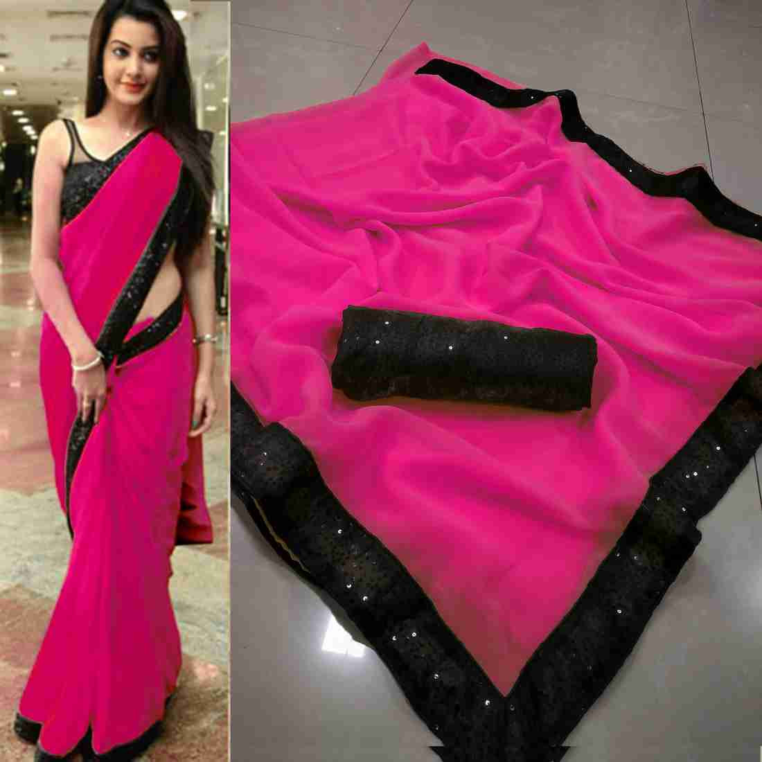 প্রিমিয়াম সফট ইন্ডিয়ান ওয়েটলেস জর্জেট শাড়ী ব্লাউস পিস্ সহ