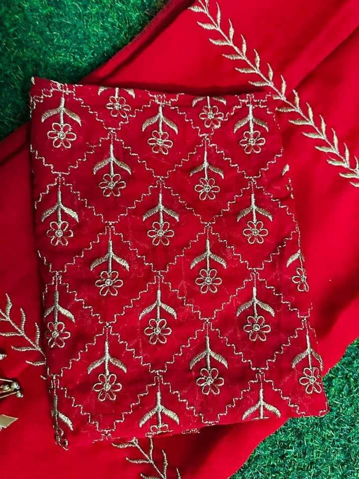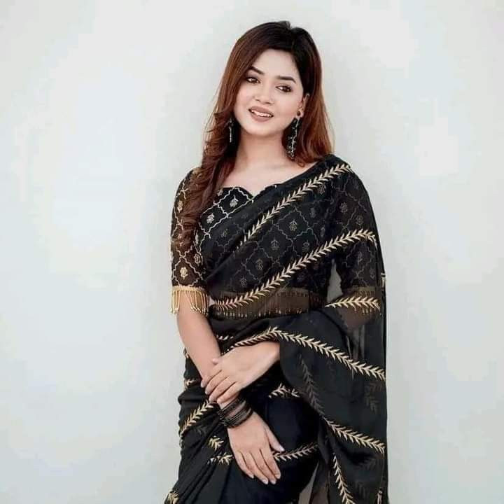 এই  শাড়ি  সফট ইন্ডিয়ান ওয়েটলেস জর্জেট ফ্যাব্রিক দিয়ে তৈরী করা এবং সম্পূর্ণ শাড়ির আঁচল ও কুঁচি জুড়ে সুতার এমব্রয়ডারি কাজ এটিকে আরও আকর্ষণীয় করে তোলে এবং যেকোনো বিশেষ অনুষ্ঠানের পরিধানের জন্য উপযুক্ত।