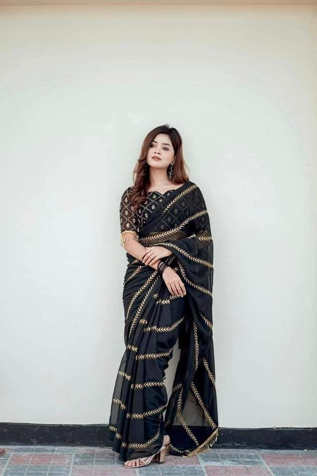 প্রিমিয়াম সফট ইন্ডিয়ান ওয়েটলেস জর্জেট শাড়ী ব্লাউস পিস্ সহ