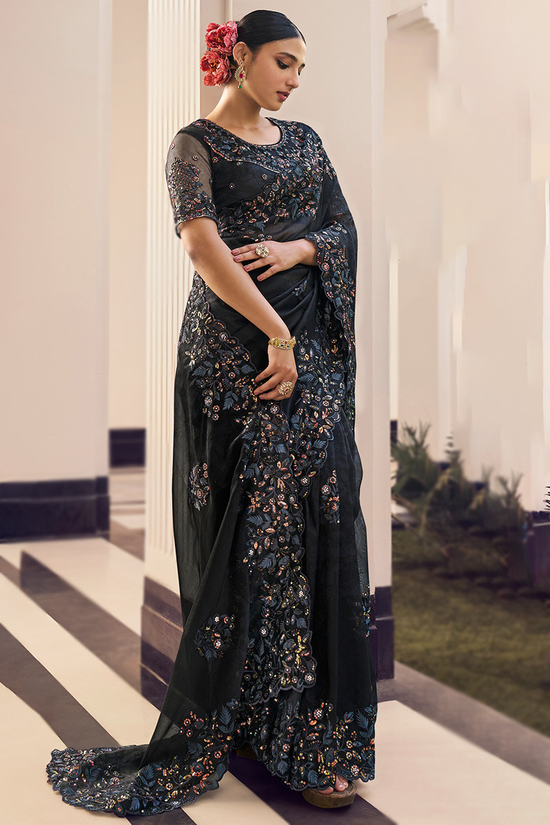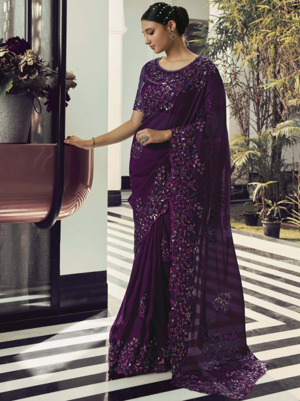 এই  শাড়ি  সফট মসলিন অরগান্জা ফ্যাব্রিক দিয়ে তৈরী করা এবং সম্পূর্ণ শাড়ির আঁচল ও কুঁচি জুড়ে  এমব্রয়ডারি কাজ এটিকে আরও আকর্ষণীয় করে তোলে এবং যেকোনো বিশেষ অনুষ্ঠানের পরিধানের জন্য উপযুক্ত।