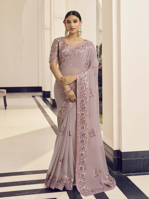 এই  শাড়ি  সফট ইন্ডিয়ান ওয়েটলেস জর্জেট ফ্যাব্রিক দিয়ে তৈরী করা এবং সম্পূর্ণ শাড়ির আঁচল ও কুঁচি জুড়ে সুতার এমব্রয়ডারি কাজ এটিকে আরও আকর্ষণীয় করে তোলে এবং যেকোনো বিশেষ অনুষ্ঠানের পরিধানের জন্য উপযুক্ত।