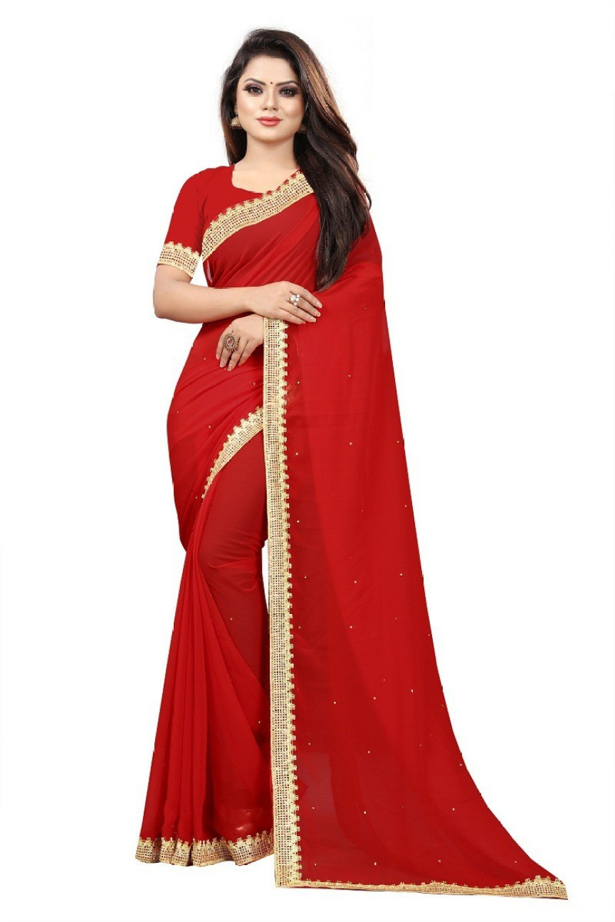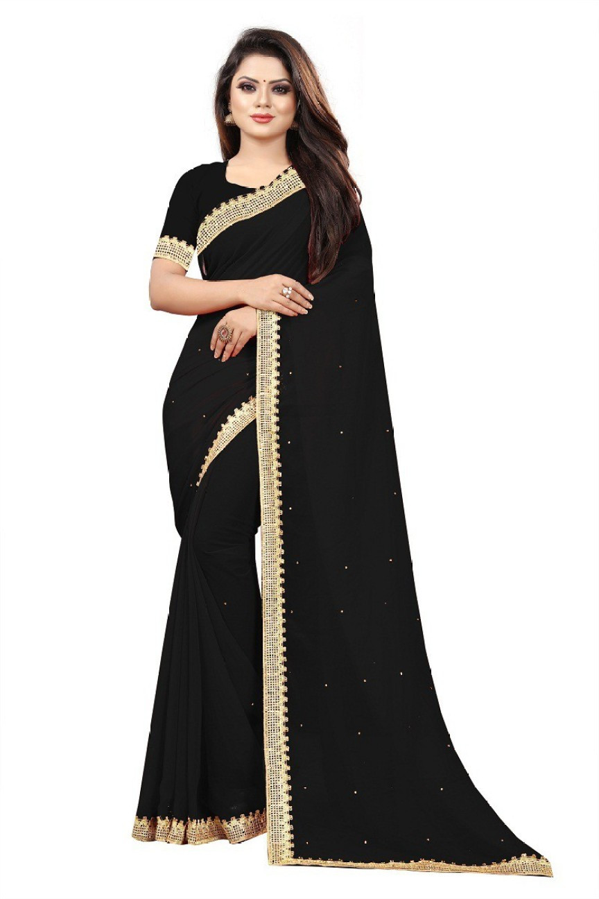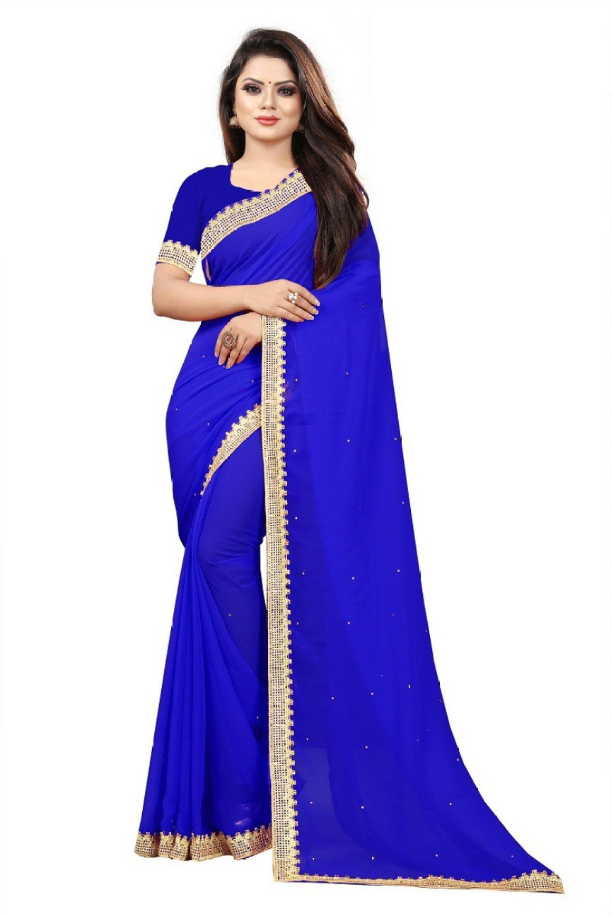 প্রিমিয়াম সফট ইন্ডিয়ান ওয়েটলেস জর্জেট শাড়ী ব্লাউস পিস্ সহ