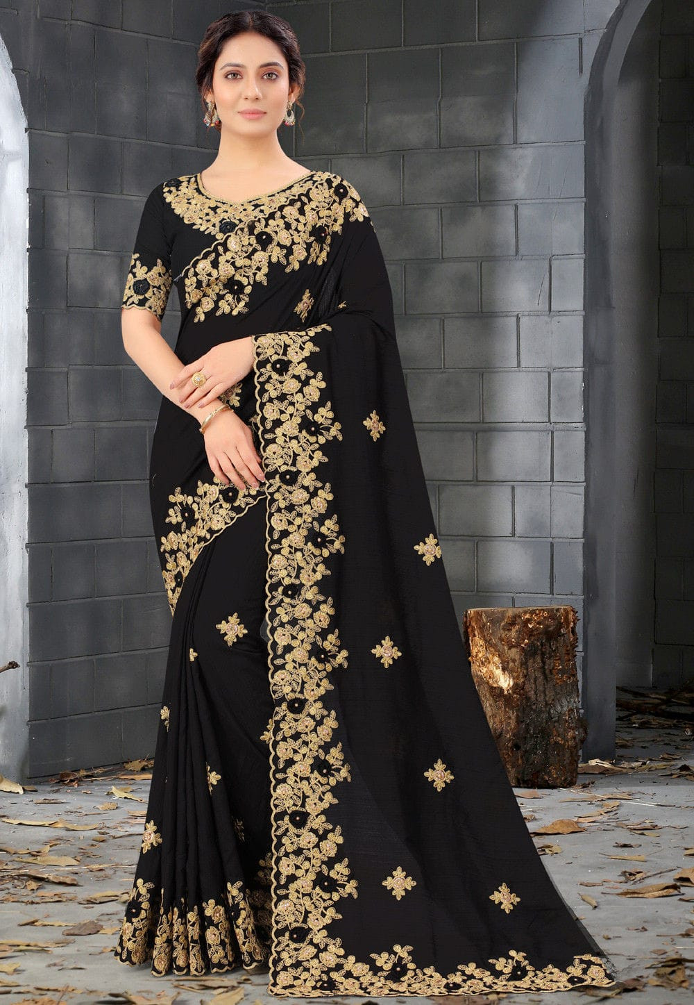 এই শাড়ি সফট ইন্ডিয়ান ওয়েটলেস জর্জেট ফ্যাব্রিক দিয়ে তৈরী করা এবং সম্পূর্ণ শাড়ির আঁচল ও কুঁচি জুড়ে জরি সুতার এমব্রয়ডারি কাজ এটিকে আরও আকর্ষণীয় করে তোলে এবং যেকোনো বিশেষ অনুষ্ঠানের পরিধানের জন্য উপযুক্ত।