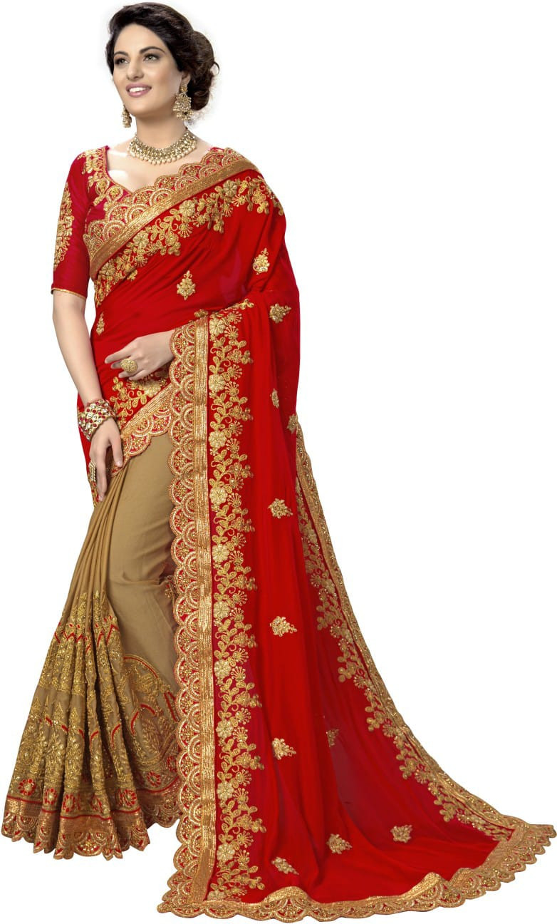 প্রিমিয়াম সফট ইন্ডিয়ান ওয়েটলেস জর্জেট শাড়ী ব্লাউস পিস্ সহ