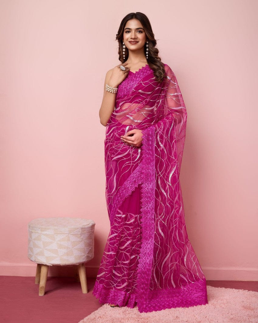 প্রিমিয়াম সফট অরগান্জা মসলিন শাড়ী ব্লাউস পিস্ সহ