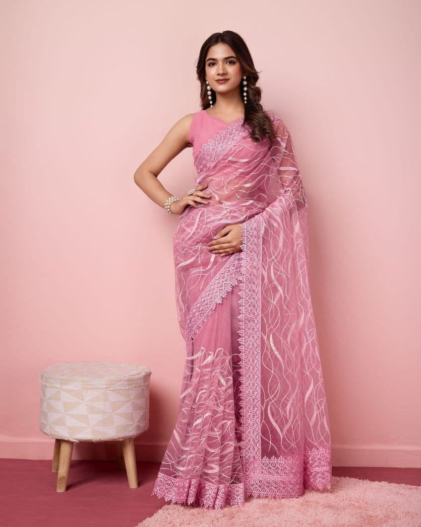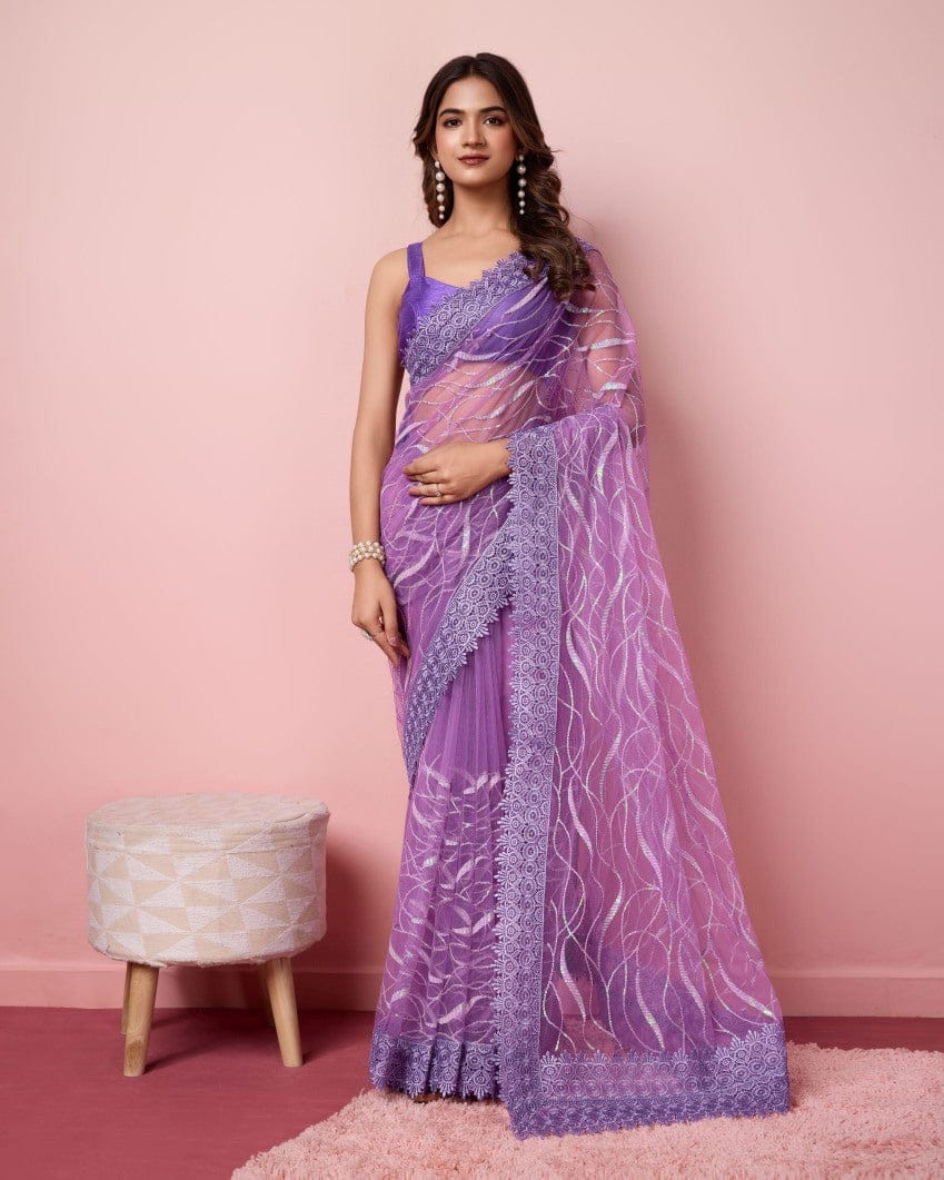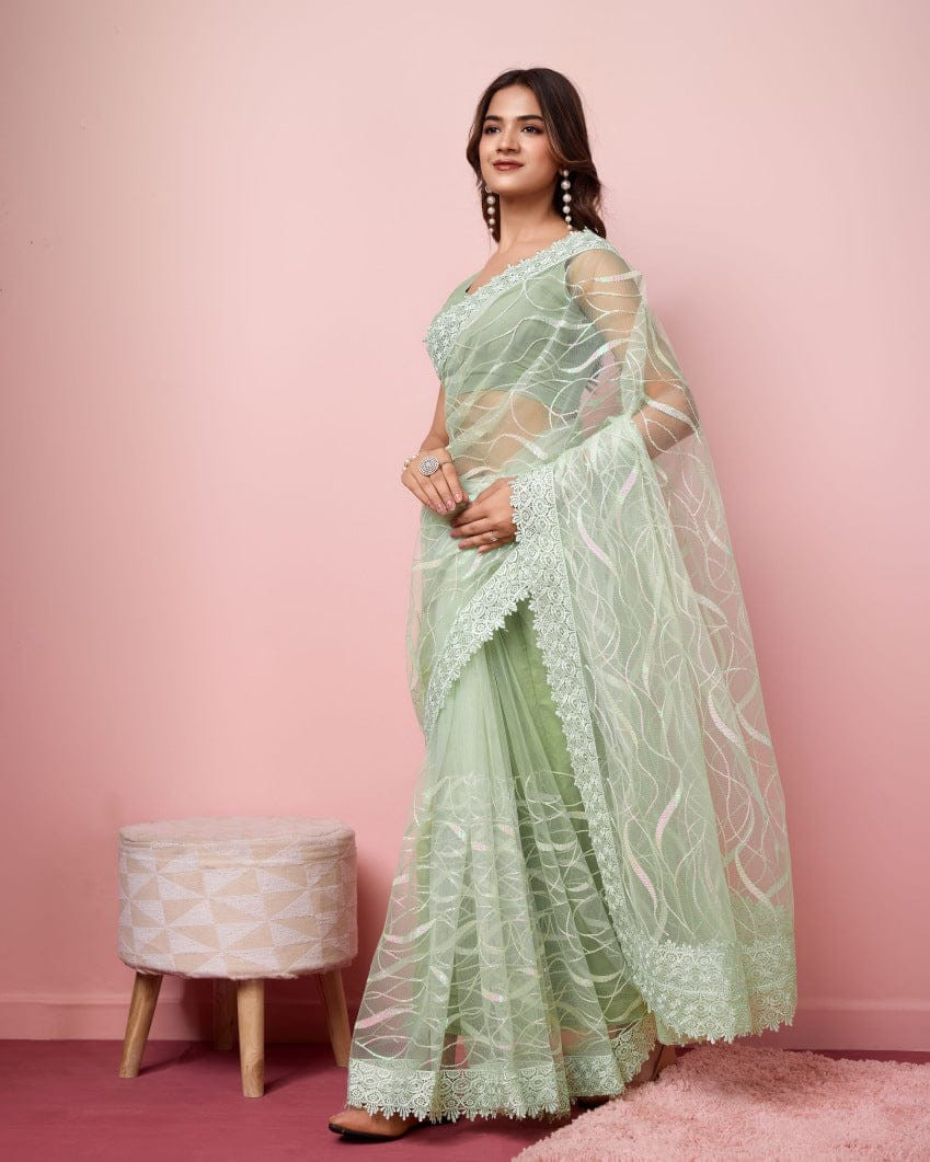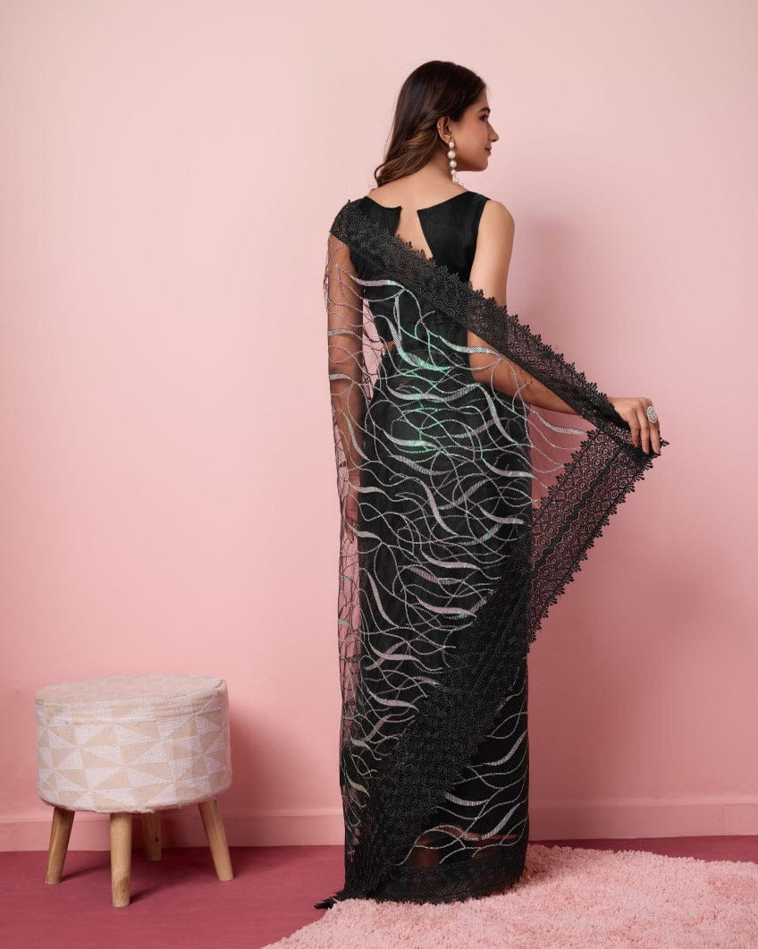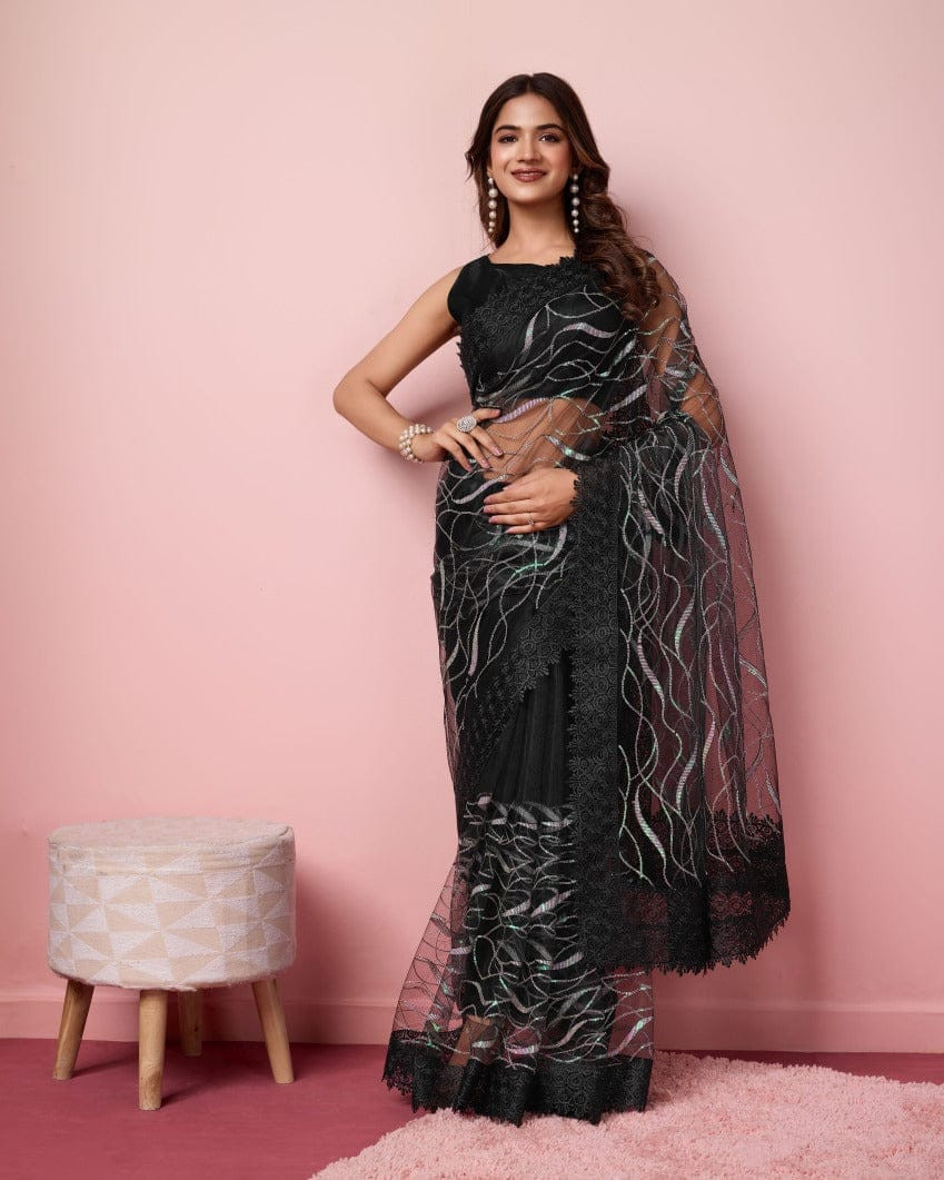 এই  শাড়ি  সফট মসলিন অরগান্জা ফ্যাব্রিক দিয়ে তৈরী করা এবং সম্পূর্ণ শাড়ির আঁচল ও কুঁচি জুড়ে  এমব্রয়ডারি কাজ এটিকে আরও আকর্ষণীয় করে তোলে এবং যেকোনো বিশেষ অনুষ্ঠানের পরিধানের জন্য উপযুক্ত।